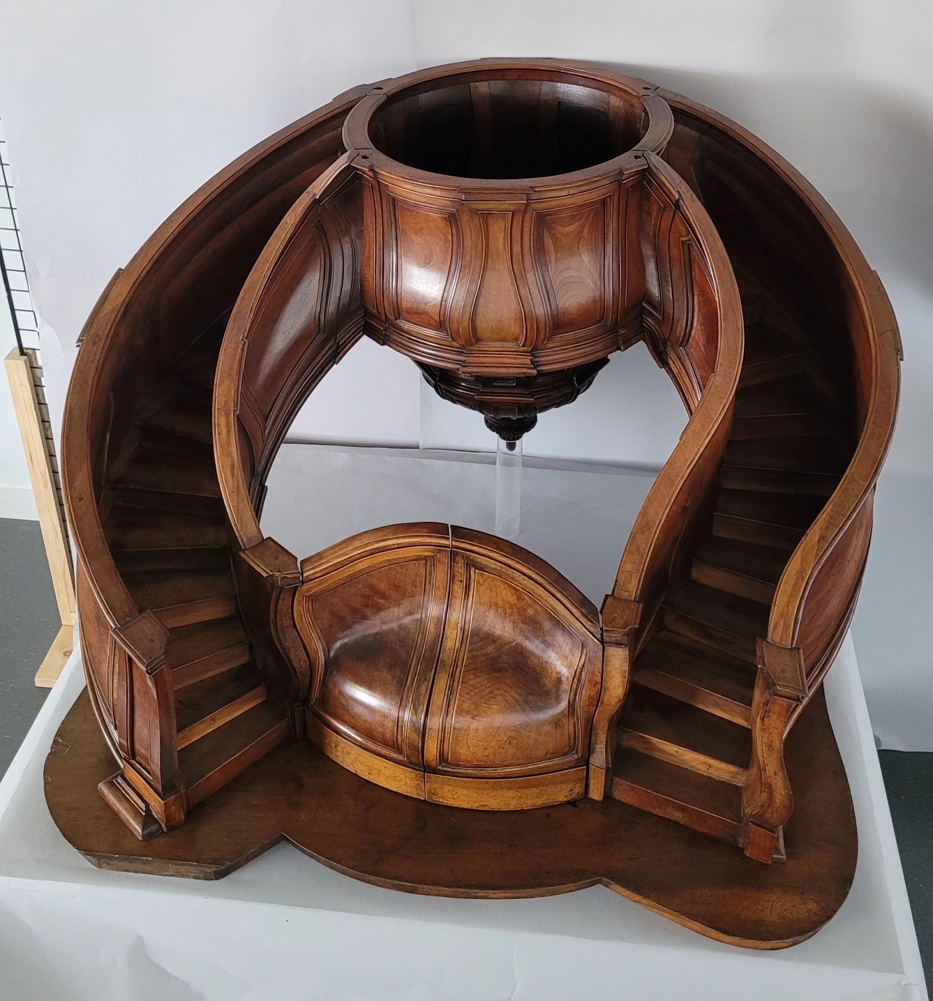 Ce projet consistait à restaurer la chaire et réaliser un nouveau socle, mais surtout de faire une étude approfondie de l’œuvre qui n’avait jamais été faite depuis sa fabrication en 1803. Sans l’avoir anticipé, nous allions faire des découvertes importantes sur son histoire.